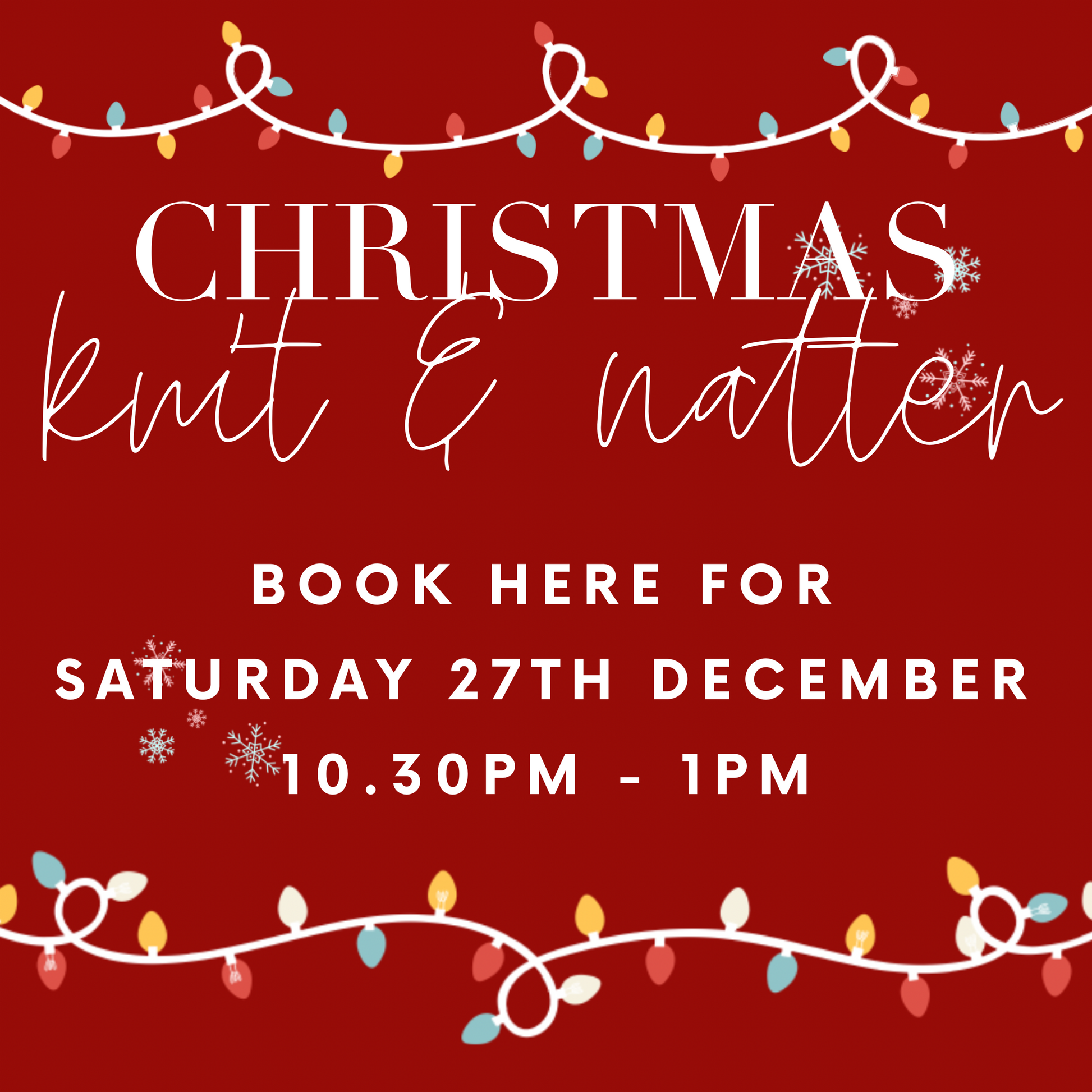Christmas Knit + Natter - Book Here for 27th December 10.30-1pm