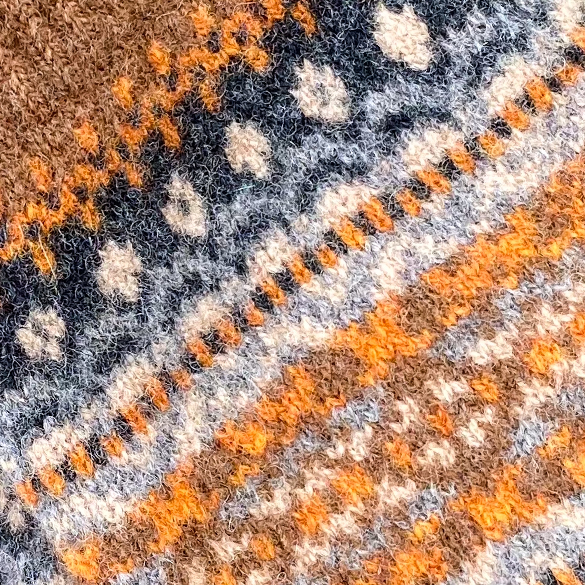 Elevate your winter style with these striking open mitts crafted from pure Merino wool. Featuring eye-catching geometric patterns and traditional Fairisle designs in bold, contrasting hues, they deliver both warmth and visual impact. The clever hidden inner cuff adds an unexpected pop of colour that reveals itself as you move. Practical yet undeniably stylish, these mitts are the perfect accessory for anyone seeking comfort without compromising on personality.