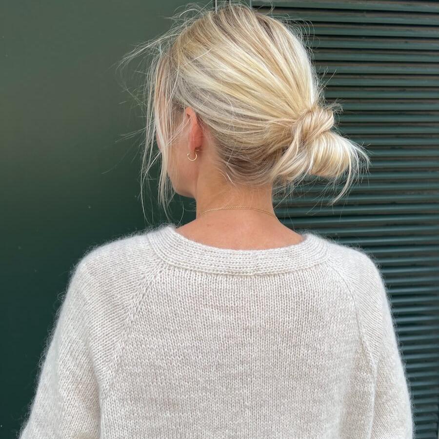 Materials: 450 (500) 550 (600) 650 (700) 700-750 (750) 800 g Tynn Peer Gynt by Sandnes Garn (50 g = 205 m [187 yds]) held together with 225 (250) 275 (300) 325 (350) 350-375 (375) 400 g Tynn Silk Mohair by Sandnes Garn (25 g = 212 m [232 yds])
