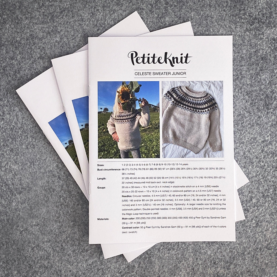 Petite Knit - Celeste Sweater Junior- Printed Knitting Pattern in English - For those of you who like your knitting patterns as hard copies.