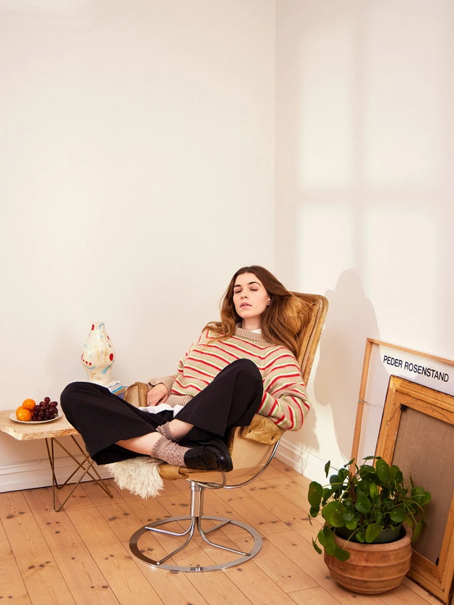 Work sweater from neck down with stripe pattern according to diagram in Sunday and Tynn Silk Mohair.